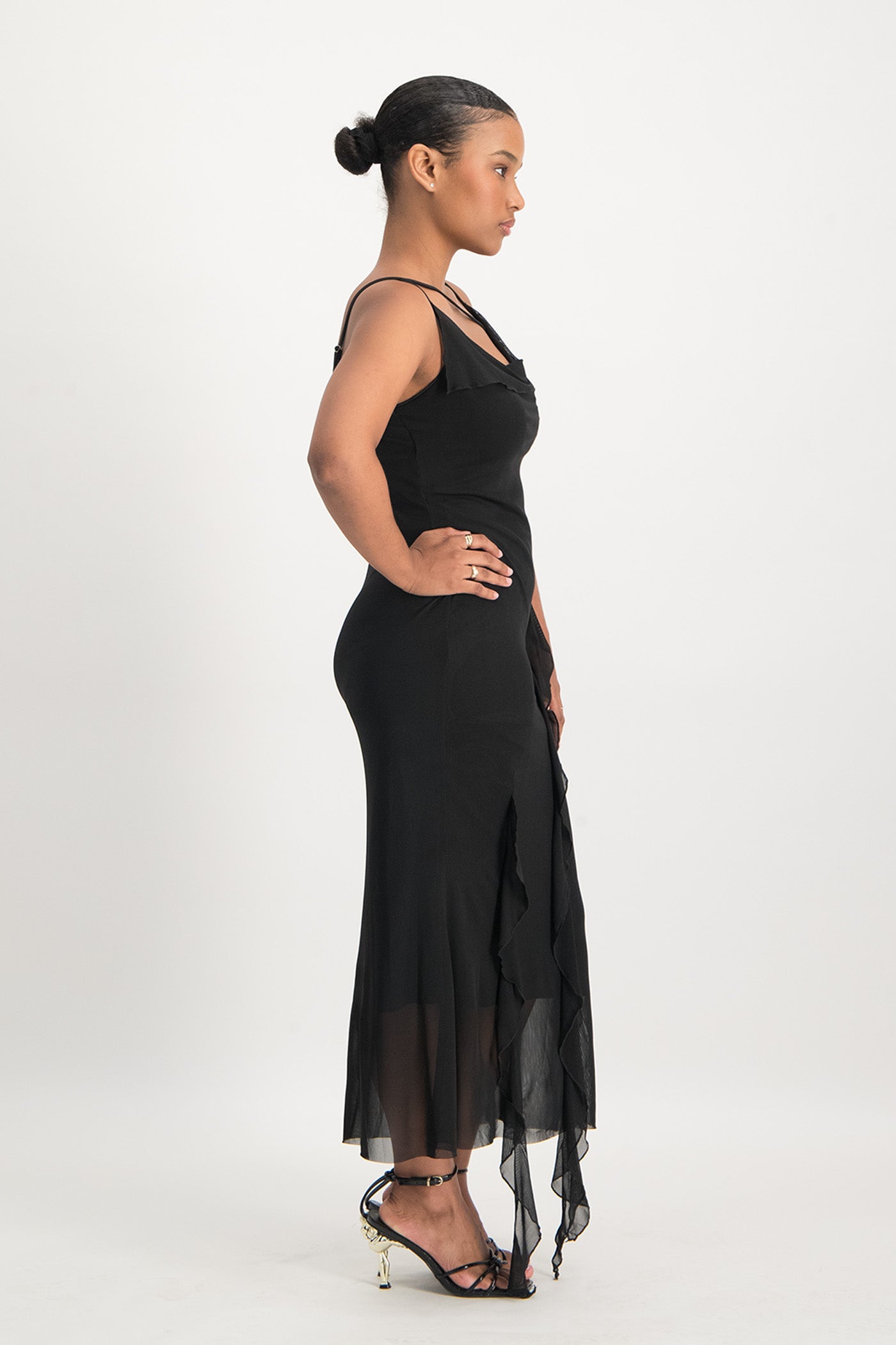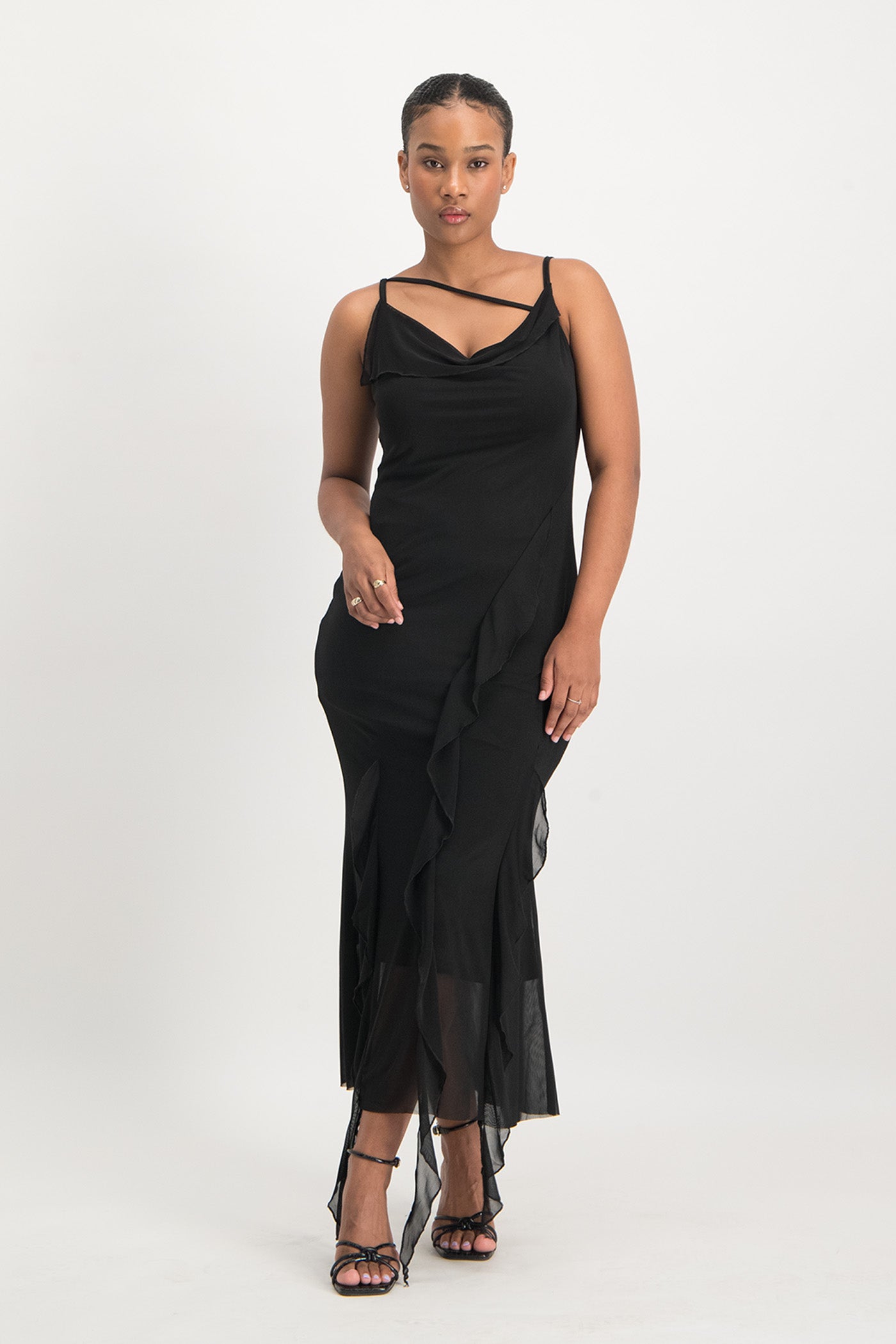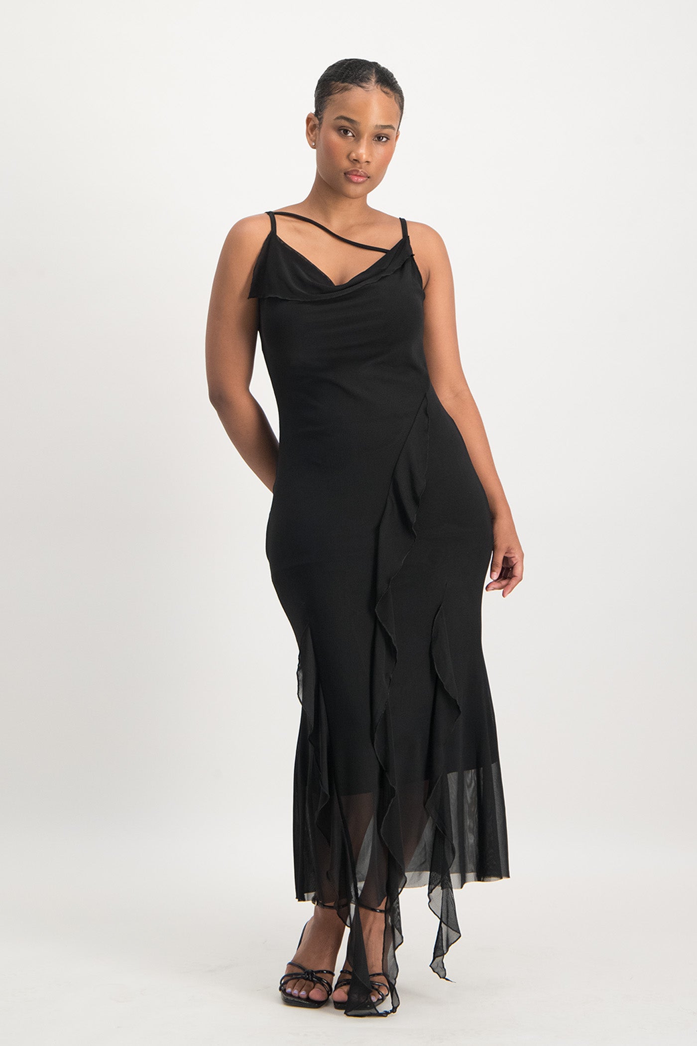 Keira Cowl Neck Ruffle Dress - Black