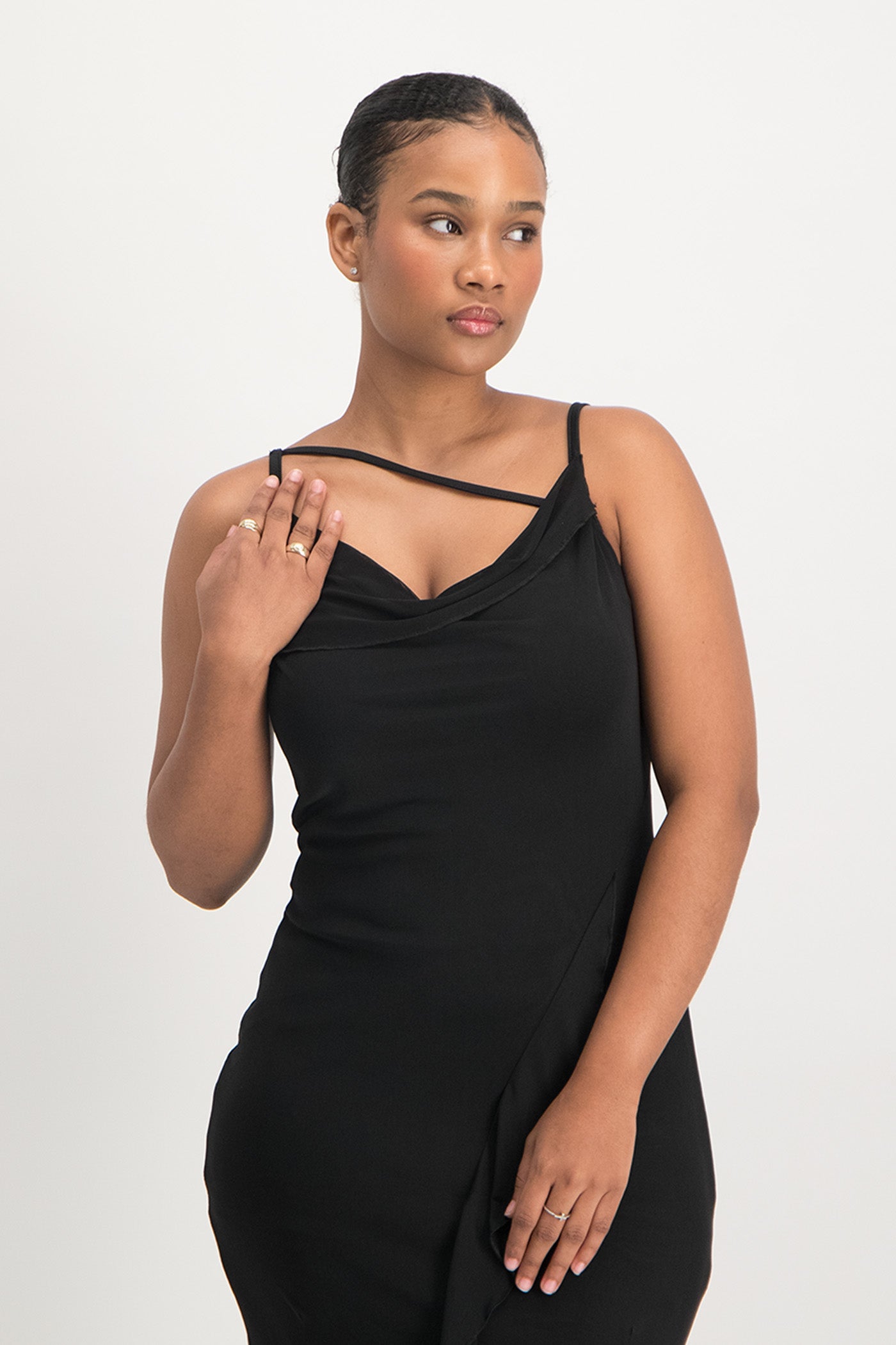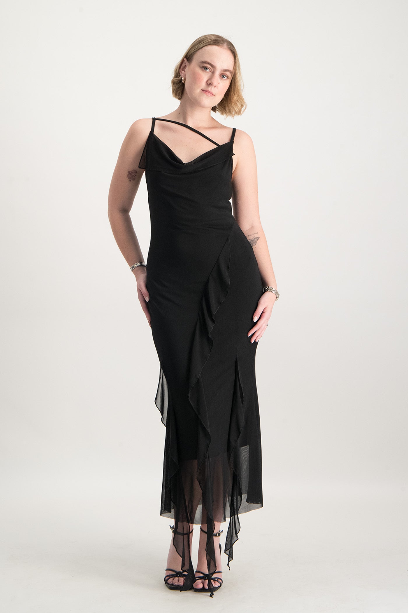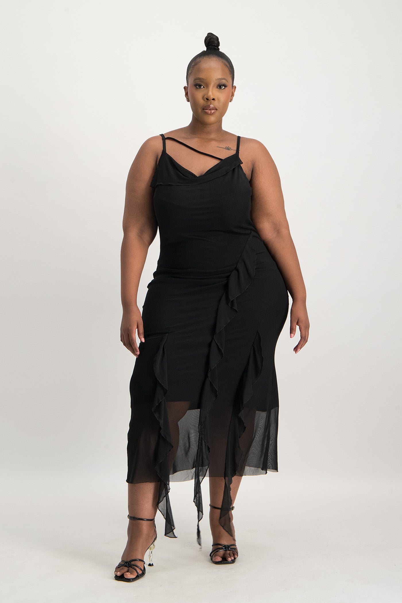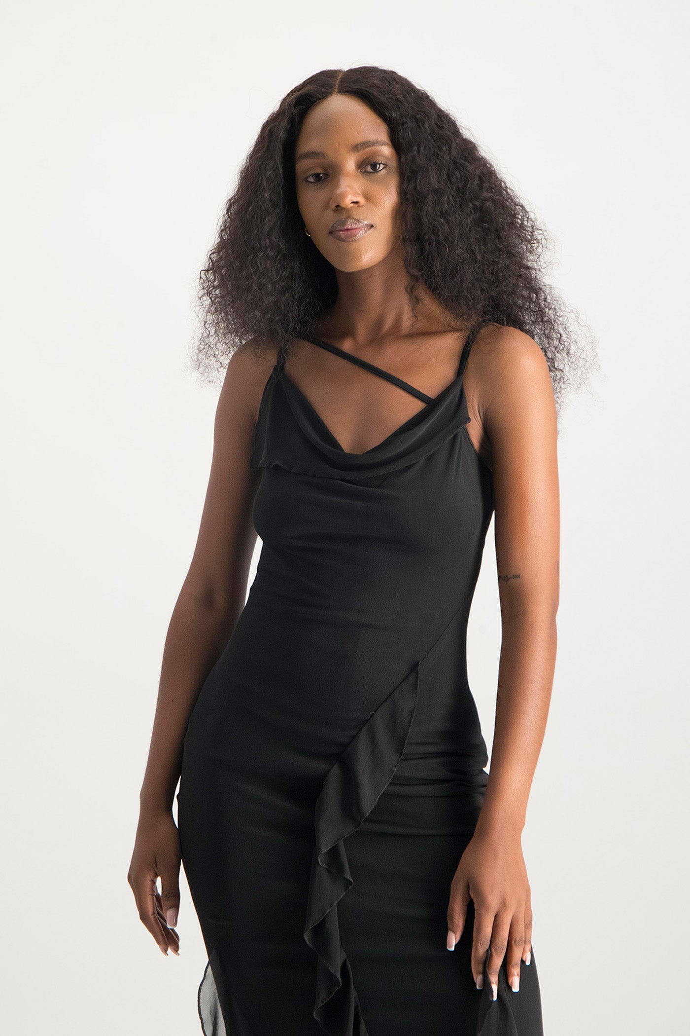 Keira Cowl Neck Ruffle Dress - Black