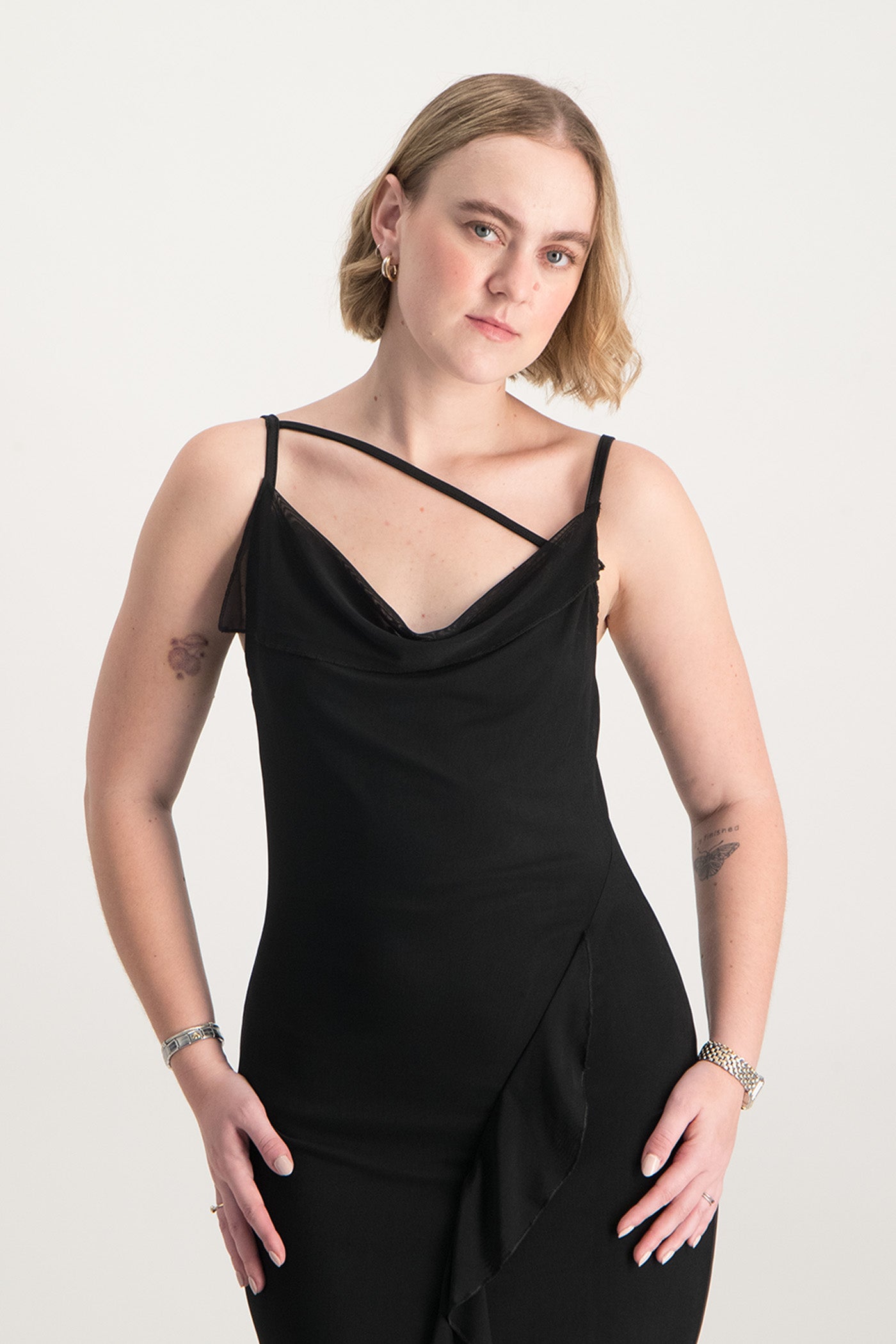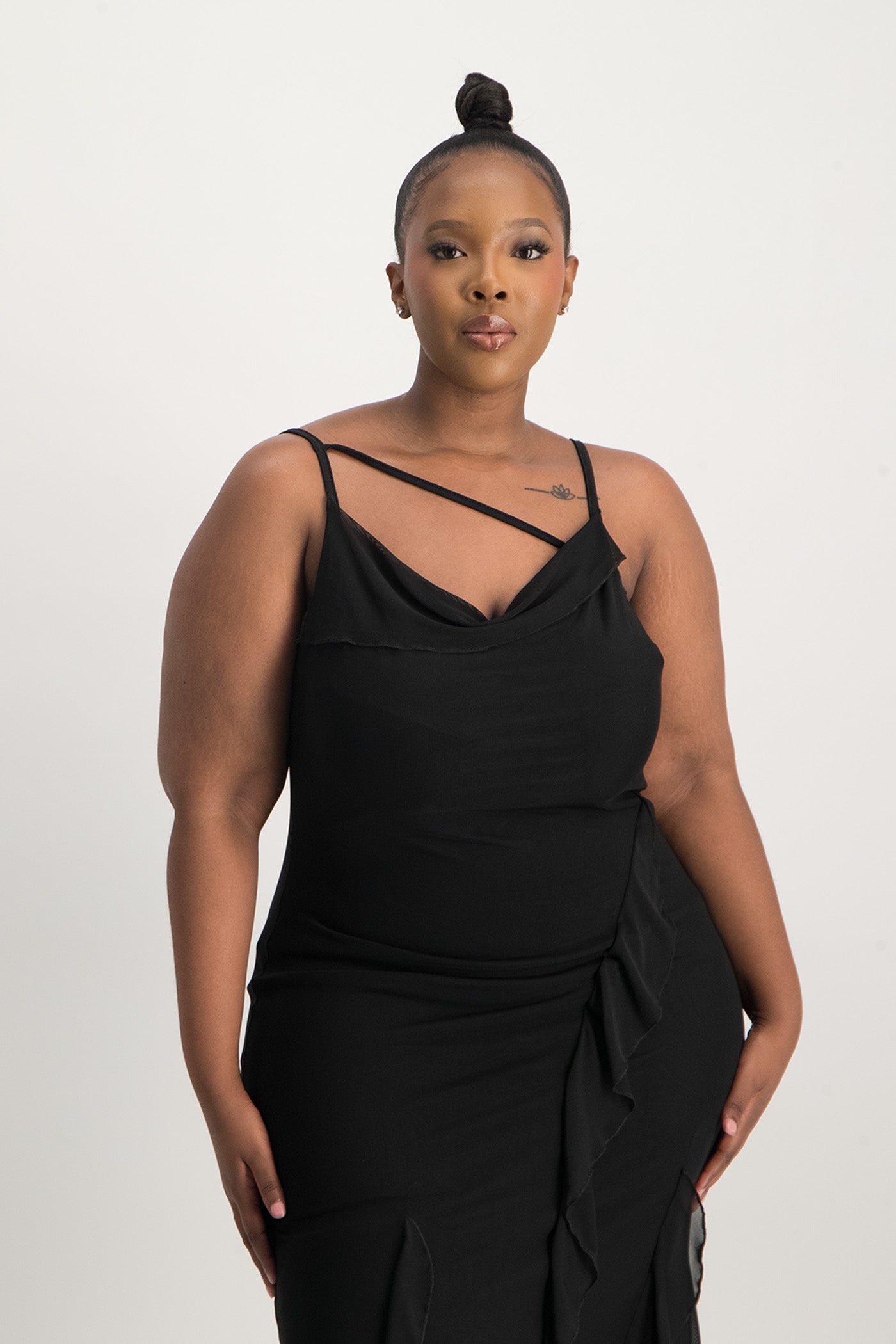 Keira is the perfect blend of sensual and romantic styling. In our printed mesh fabrication with a cowl neckline with an asymmetric strap finish and a ruffle bottom detail, what more can a girl ask for? Pair her with your fave heels and minimal accessories to finish the look.