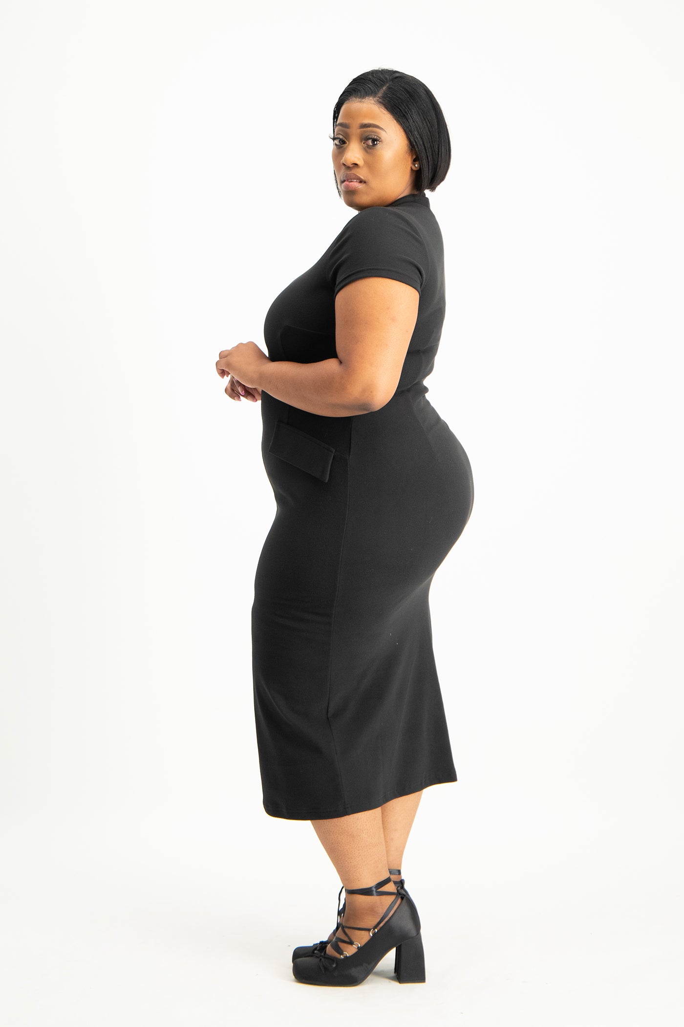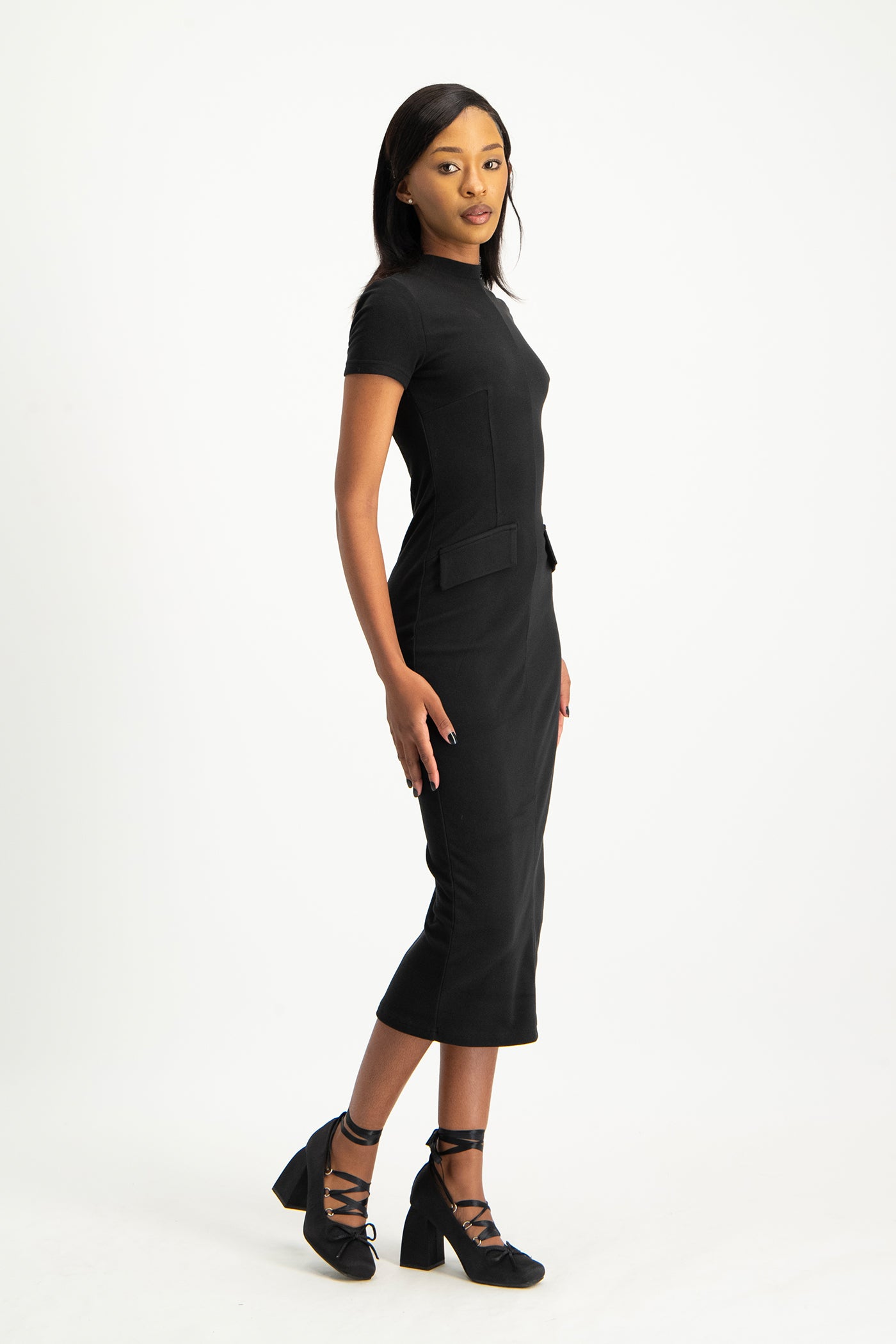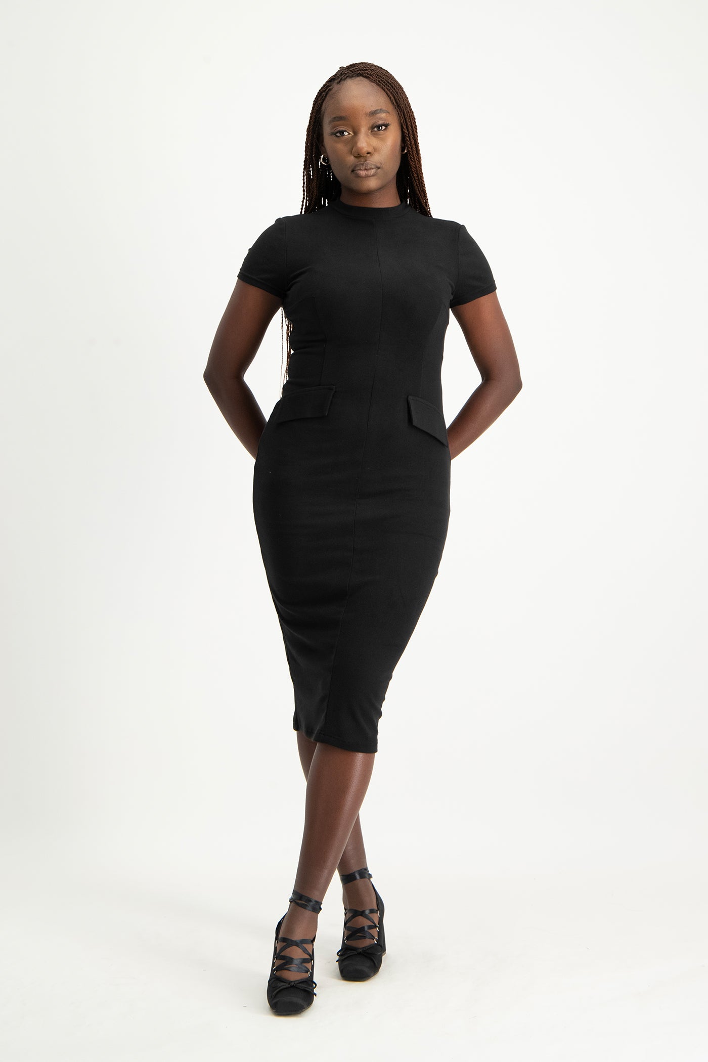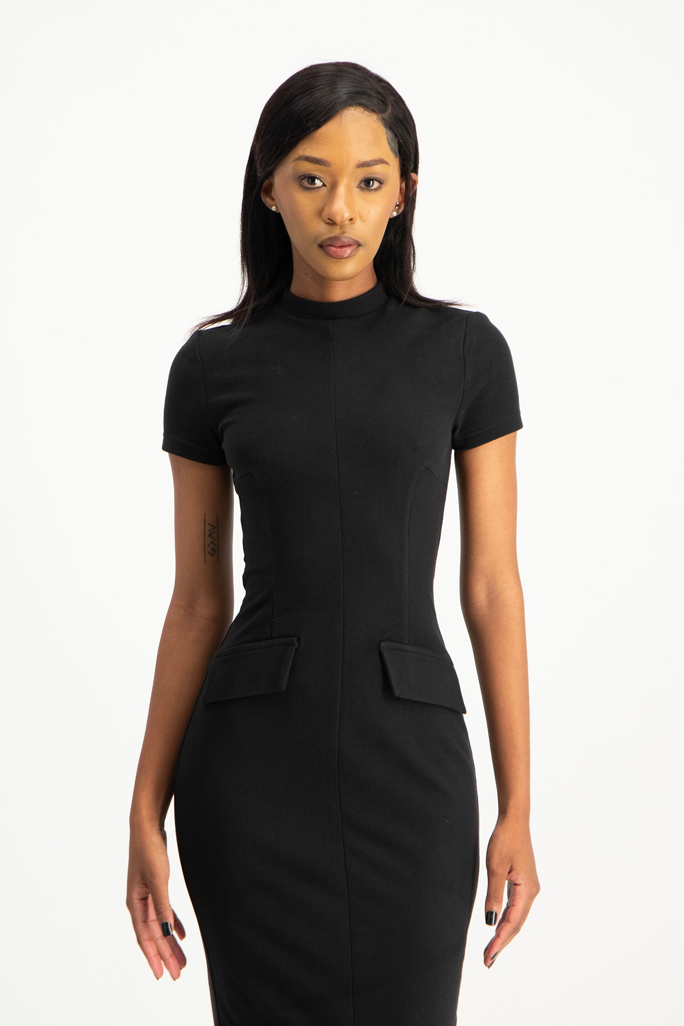 Less is more girl with our chic Cami Short Sleeve Turtleneck Dress. The buttery soft fabrication with a panelled torso that accentuates your body perfectly, a turtleneck and mock pocket flap detailing, it’s the perfect dress for your everyday styling. Pair with black heels and a mini bag to finish off your look.