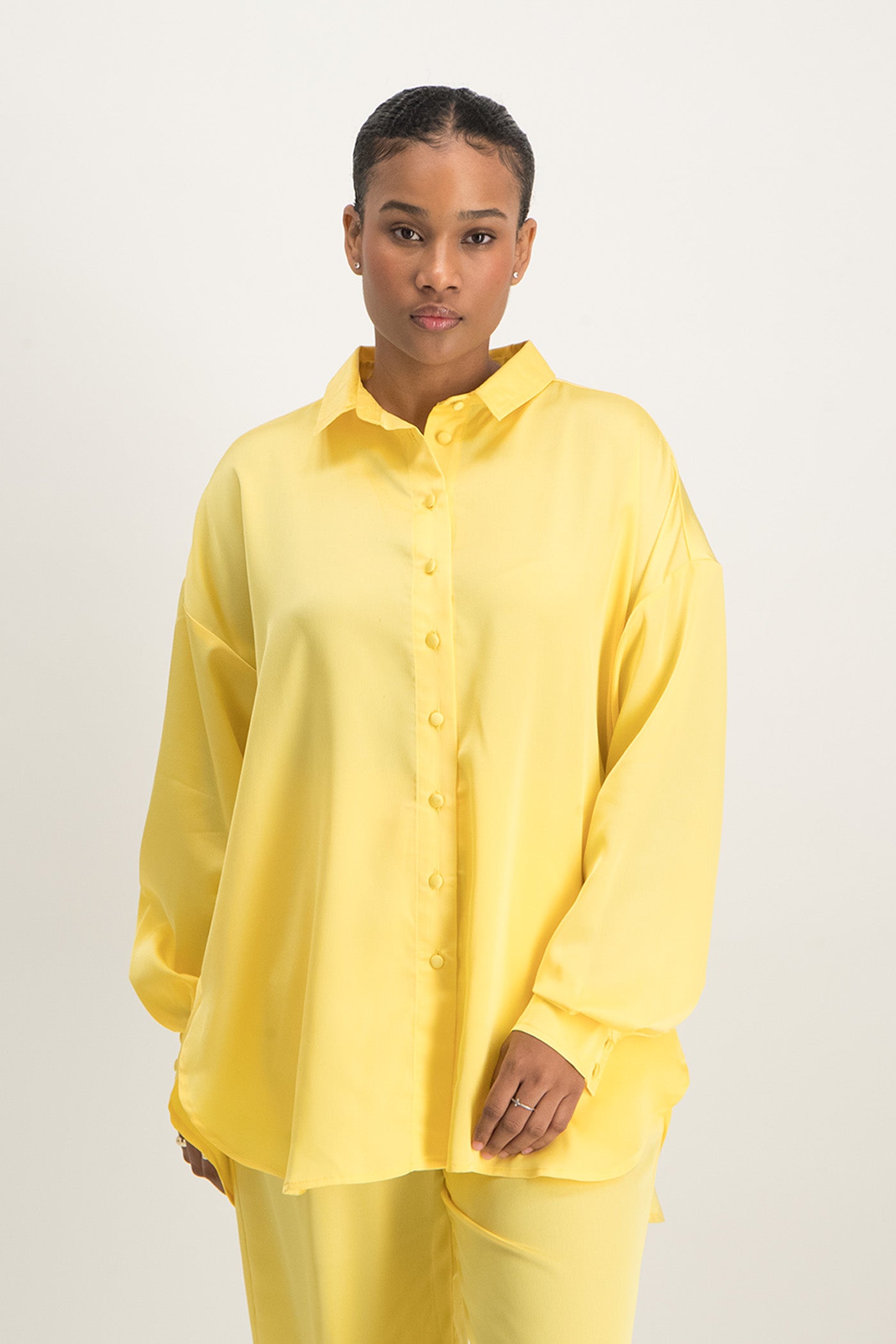 There's nothing quite like an oversized satin shirt to make you feel cool & chic at the same time. Made from a gorgeous, lightweight textured satin blend, this is the ultimate luxe summer shirt you'll pair with anything & everything.