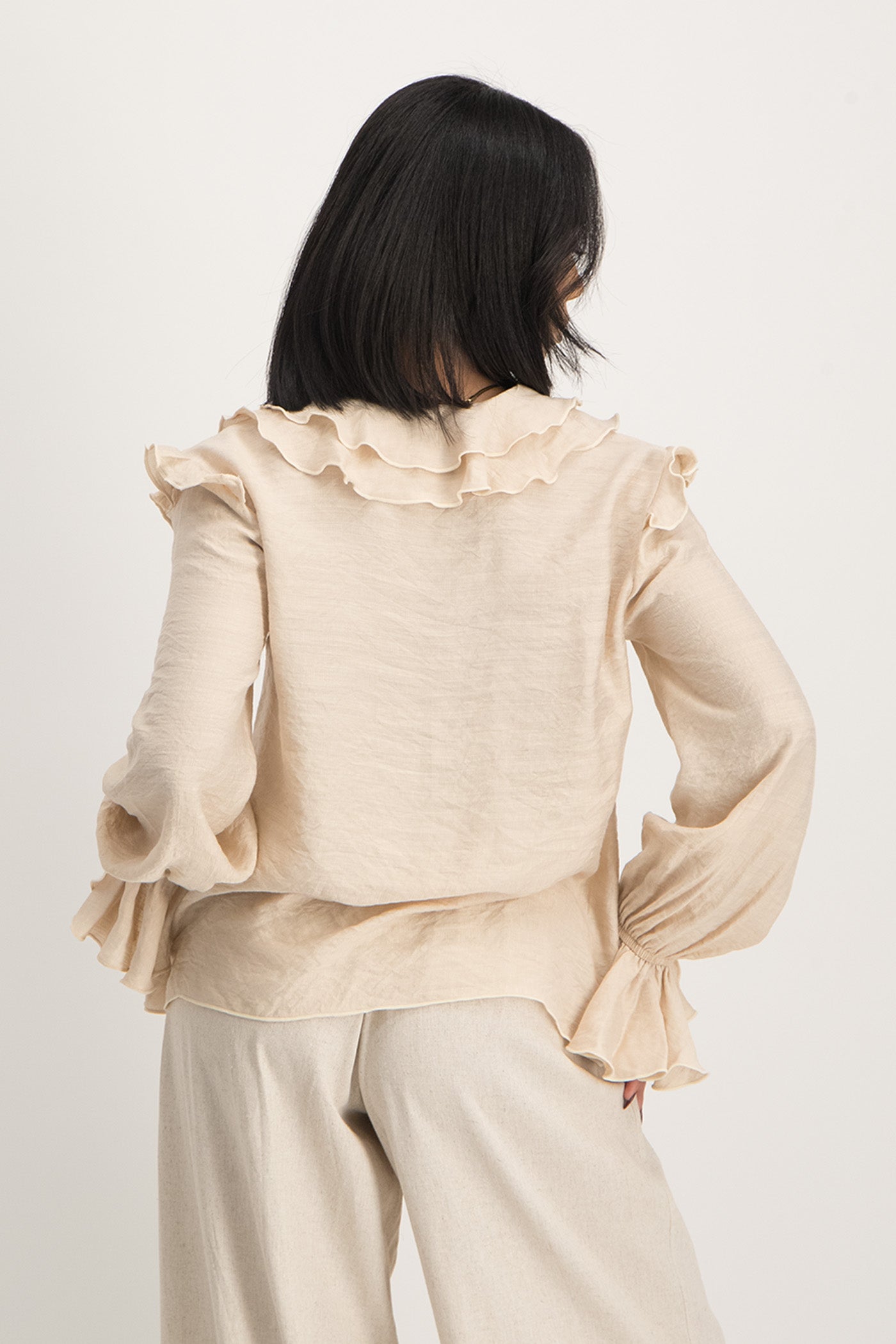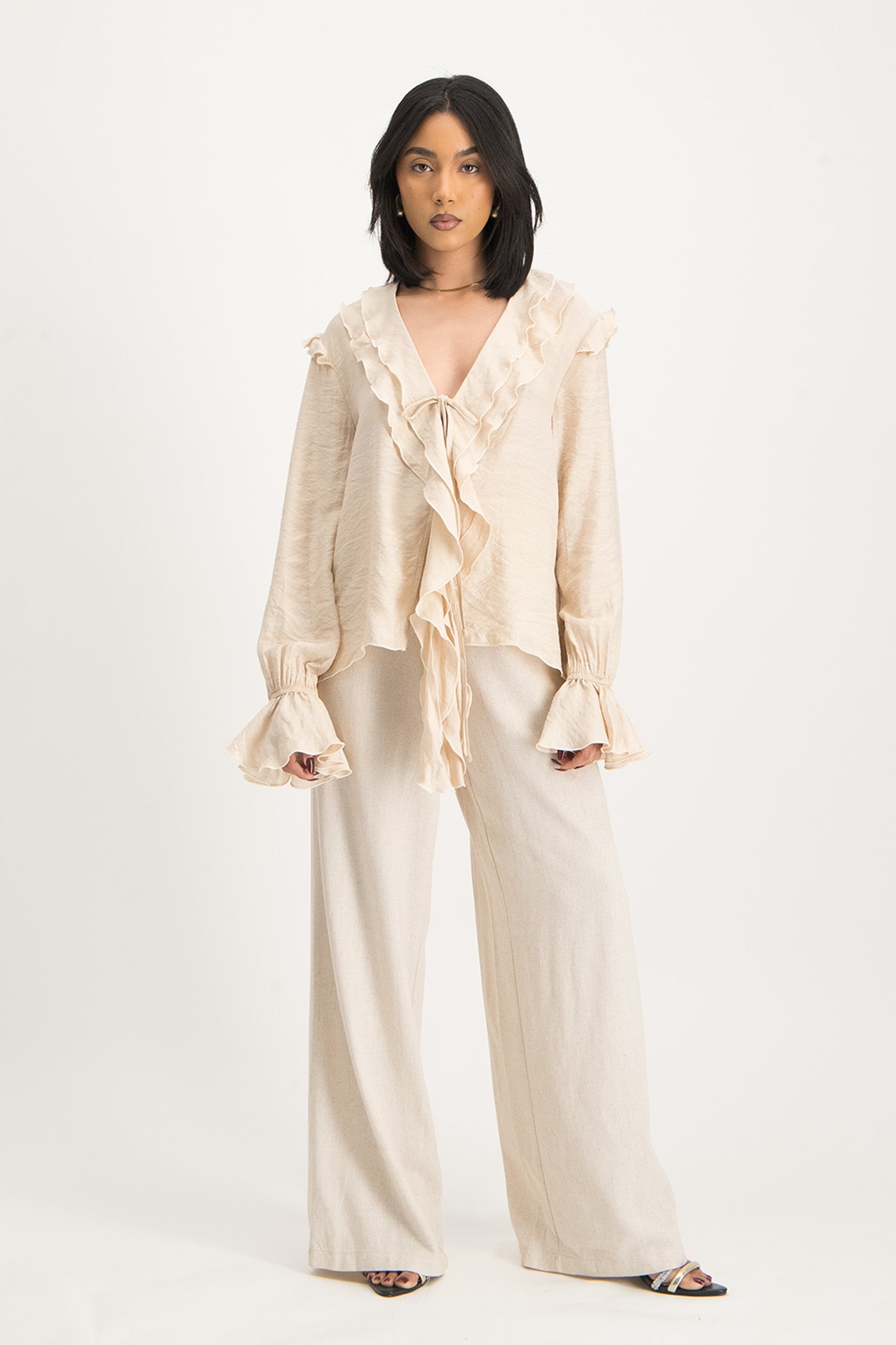 Reese Tie Front Ruffle Blouse - Stone
